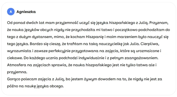 Mam na imię Julia i od lat pomagam Polakom w różnym wieku zakochać się w języku hiszpańskim.